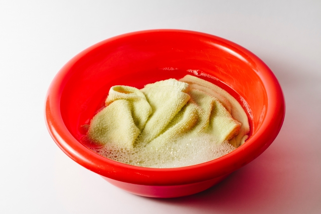 洗濯するまでは干しておくなどの工夫が必要になります。 液体洗剤を使用し、たっぷりの水で洗うのも効果的です。